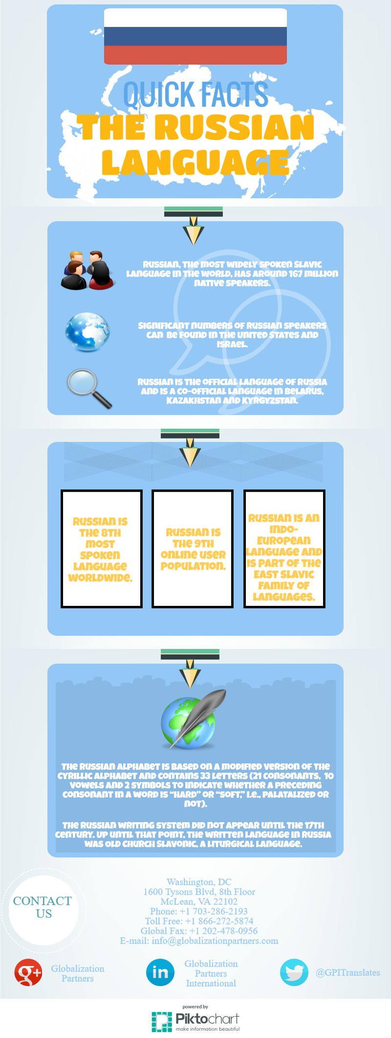 To provide you with a snapshot of the information found in GPI’s latest eBook below is a summary infographic.Ā You may also download the full eBook at Quick Facts: The Russian Language.