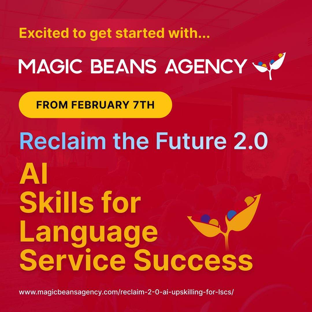 Currently, some of our project managers are taking the 10-week course “Reclaim the Future 2.0, AI Skills for Language Service Success” provided by the Magic Beans Agency, focusing on AI in Language Services to enhance skills in translation, quality management, and localization.