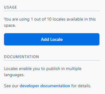 - The next step will be to select a locale. The list is extensive but, if you require a locale that is not listed, you can use the Content Management API to create a custom one.