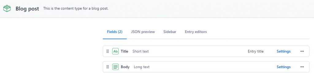 As mentioned before, Contentful organizes content into spaces that allow you to group all the related content for a project. Each space has a content model that represents the content types you create.