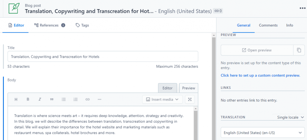 This option is useful when you need to make translations directly in the online editor of Contentful.