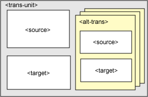 XLIFF files are frequently used in the localization industry because of their simplicity and interoperability. Most CAT tools support them. XLIFF files are basically XML files that contain a collection of translation units. A translation unit contains a paragraph that is extracted from the source document and is inside the <source> element. The translated text will go inside the <target> element. Alternatively, legacy translations from other projects can be added to <alt-trans> to be used as a guideline or reference.