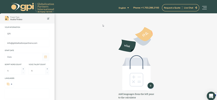 - To begin, just click on the link:Ā https://www.globalizationpartners.com/translation-quote-calculator and select your project type.