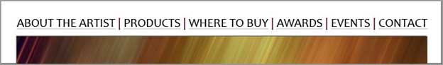 All this may seem daunting for an artist or gallery with minimal budgets and time, however it does not have to be. The very first step is taking the time to get to know what your consumers need to know about your product (colors, size, make, models, raw materials, etc). Take some time to write down a little background and profile on yourself and how it all started, and of course some contact details. It is always very effective to have images of your products or events where they have been used or purchased, along with any accolades or awards you have gained throughout the years. With this information and some good imagery you have the start of your website structure. This would go something like this on the top panel across the home page to your website:
