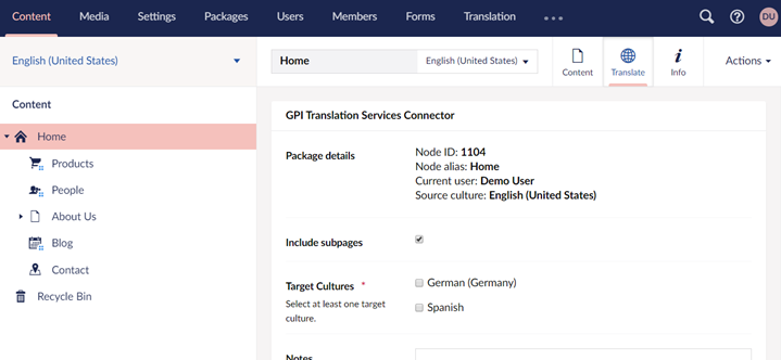 GPI Translation Connector for Umbraco 8