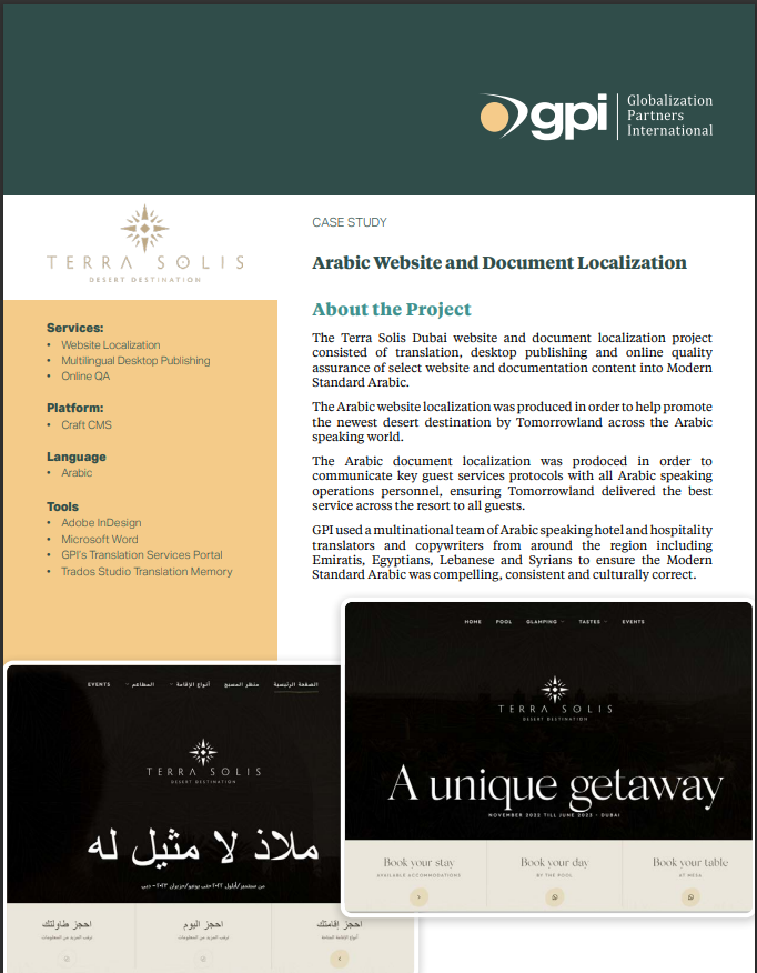 About the Project The Terra Solis Dubai website and document localization project consisted of trans...