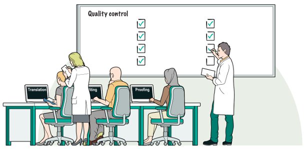 - Copywriters, översättare och redaktörer arbetar i team som följer dokumenterade kvalitetskontrollprocedurer.