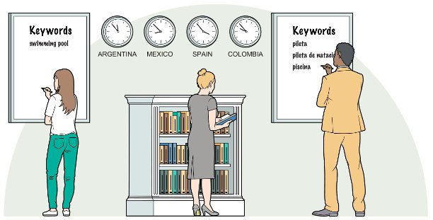 - Flerspråkig sökordsfrasforskning, -förfining och -lokalisering.