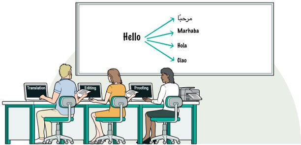 Översättningar utförs av ett grundläggande översättnings-/copywriting-team och redigeras/korrekturläses därefter av ett andra språkligt team.
